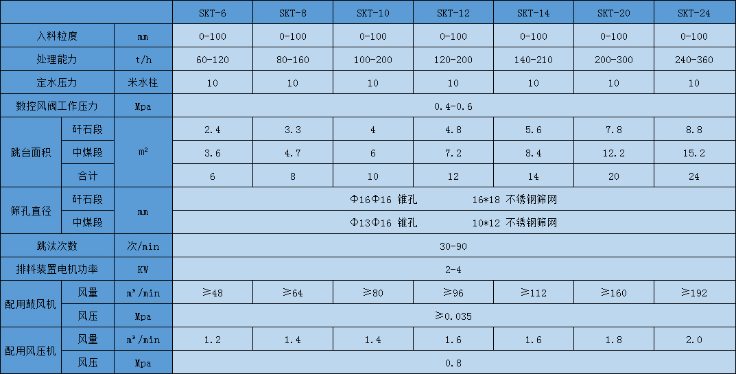 SKT系列數(shù)控跳汰機(jī)和老式跳汰機(jī)相比,效率可提高3%-5%,單位處理能力可提高20%。